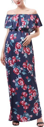 Calanthe Off the Shoulder Maternity Nursing Maxi Dress