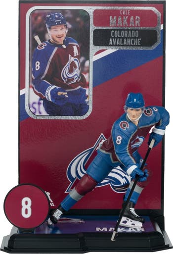 Cale Makar (Colorado Avalanche) McFarlane NHL 7" Figure. Cale Makar debuted for the Colorado Avalanche in the 2019 Stanley Cup Playoffs, scoring a goal in his first NHL game just days after winning the Hobey Baker Award. He won the Calder Trophy in 2020, then had a historic 2021-22 season with 28 goals and 86 points, winning the Norris Trophy, Stanley Cup, and Conn Smythe as playoff MVP — becoming the first player to capture all three honors in a career. Makar has set multiple Avalanche/Nordiques records for goals and points by a defenseman, became the fastest in NHL history at his position to reach 200 points, and is a four-time Norris finalist. In 2024-25, he became the ninth defenseman ever to score 30 goals in a season, the first since 2008-09, and the first with back-to-back 90-point seasons since the early 1990s, earning his second Norris Trophy. The Calgary native, drafted fourth overall in 2017, is regarded as one of the most dynamic and complete defensemen in NHL history.