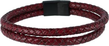 - Hand-braided double strand of genuine leather in a deep crimson tone