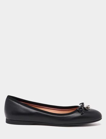 This Ysla ballet flat features an upper in black calfskin and an all-rubber sole with the iconic Ballyrina logo. Metal bells with an engraved Bally Crest decorate the toe.