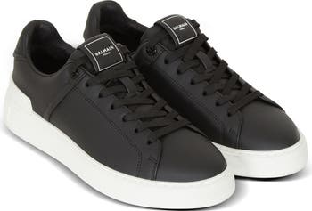 Calfskin B-Court trainers with PB tongue Lace fastening with engraved eyelets Leather label with contrasting Balmain Paris logo B logo-embossed leather heel counter Visible stitching Thick rubber outsole, Balmain logo Leather lining and insole Main material: 100% calfskin Made in Italy Item: GM1VI288LVTR