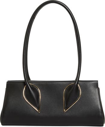 A '90s-inspired baguette silhouette defines this compact calfskin bag detailed with prominent metallic piping at handles and the new metal hardware that evokes the silhouette of the label's iconic sole.