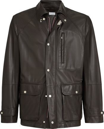 - Double closure with zip and snapsShirt-style collarSnaps at cuffsUpper pocket with zipperPatch hand pockets with flap and buttonUnlinedTwo interior pockets