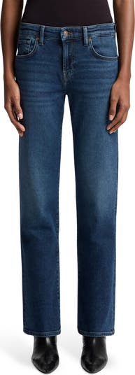 Deep sanding and artistic whiskering lend detail to these ankle straight-leg jeans cut with just a plenty of stretch and perfect for weekend wear.