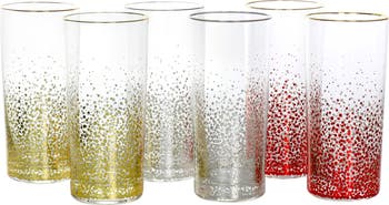 The Audrey Hill 6 Piece Glass Tumbler Set by Laurie Gates is the perfect set to celebrate any special occasion. Fill these tumblers with your favorite sparkling drink or cocktail and celebrate in style! These tumblers are designed with elegant colored rims and a metallic printed bubble pattern for a fun and classy take on drinkware. Set comes with three assorted colors including metallic red, gold, and silver. Constructed of durable glass with printed color detailing. Hand wash only, do not microwave. Item Dimensions: 3.00" x 3.00" x 6.25" Item Weight: 0.60lbs