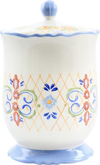 California Designs Tierra 2.7 Quarts Hand Painted Stoneware Canister with Lid