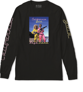 Baja Llama California Gold - Long Sleeve Primo Graphic Tee, Main, color, Black