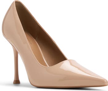 A sharp pointy toe and willowy heel frame this wardrobe-essential pump made of glossy faux leather and built with B.E.D Foam Comfort Technology for lightweight cushioning.