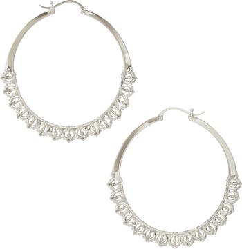 - These unique earrings feature a meticulously hand-sculpted motif along the lower half, designed to enthrall and captivate. Crafted for all-day comfort, these hoops offer the added surprise of being remarkably lightweight.