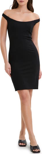 Shaping seams and a kiss of stretch enhance the figure-skimming fit of this elegant dress made to show off your shoulders.