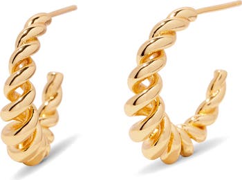 Classic open hoop earrings are given a modern twist in a sculpted silhouette that spirals in 14-karat-gold plate.