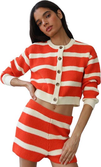 We reach for the Fiona Cardigan when the day calls for warmth with a touch of effortless style. Callahan blends cozy comfort with a refined silhouette, creating a piece that feels just as right for slow mornings as it does for evenings out. The soft, fuzzy knit delivers inviting warmth, while the cropped fit adds a modern edge that pairs easily with high-waisted bottoms or layered looks. Classic stripes give it a timeless feel, making this cardigan an easy staple we keep coming back to when we want comfort that still feels elevated.
