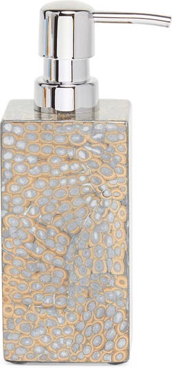 Crafted from lacquered eggshell, this elegant soap dispenser is a refined addition to your bathroom decor.