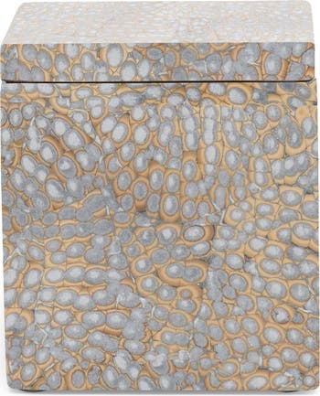 Keep all of your vanity items organized and out of sight with this patterned canister.