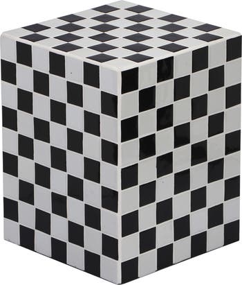 Embrace Maximalism with our modern, Bohemian-chic checkerboard accent table. The sturdy MDF cube is finished with 2" ceramic tiles. Use this versatile accent as a nightstand, or a pedestal for your favorite plant.