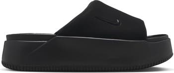 A gently contoured footbed puts calming comfort under every step in a water-friendly platform slide that's made of cushy foam and designed to wear with or without socks. Topped with synthetic leather and grounded on grippy rubber, it makes a standout foundation for any favorite look.