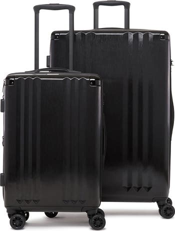 A lightweight hard shell provides durable, easy-to-maneuver utility in this sleek spinner suitcase set fitted with four multidirectional wheels for effortless airport navigation. The zippered divider creates two separate packing compartments, and an expansion sleeve unzips to increase the packing capacity.