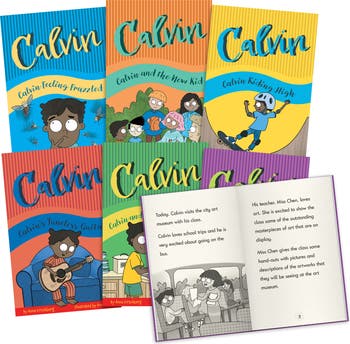 BEANSTALK BOOKS: CALVIN DECODABLE CHAPTER BOOKS - 6 BOOK SET - Join Calvin and his friends in six exciting, action-packed adventures designed especially for developing readers! This decodable chapter book set is perfect for children building their fluency and vocabulary through structured literacy. Each engaging story increases in complexity and focuses on critical reading skills, including: Affixes & Word Parts; Sentence Structure; Tiered Vocabulary Building; and Reading Comprehension & Confidence. These high-interest chapter books support foundational reading growth while keeping kids motivated with fast-paced, fun stories they’ll want to read again and again. What’s Included: 6 decodable chapter books featuring Calvin and his friends; Gradually increasing text complexity; Built-in phonics support aligned to reading science; Perfect for classrooms, homeschool, or independent reading practice. Whether used for small group instruction, intervention, or at-home reading, Calvin’s Decodable Chapter Book Set is an essential addition to any young reader's library. BUILD CONFIDENT, INDEPENDENT READERS WITH CALVIN! This 6-book set features action-packed chapters, controlled Phase 6 text, built-in phonics, and clear progression—perfect for classroom, intervention, or home use. Kids stay motivated with fun plots, relatable characters, and visuals that bring reading to life!