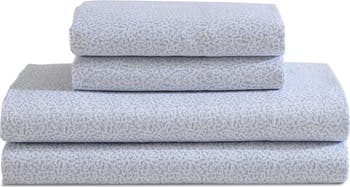 Made from silky-smooth cotton sateen, this sheet set features a serene floral print that adds relaxed-yet-elegant style to your room. The fitted sheet has deep pockets and labels on the long and short sides for easy placement.