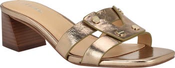 Logo-stamped studs and sleek straps bring modern flair to this slide sandal designed to elevate your day and evening looks.