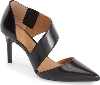 A half d'Orsay silhouette and a pointed toe further the allure of a sleek pump styled with an asymmetrical band that wraps the foot for a feminine finish. A logo-embossed rand at the back offers signature polish, while a hidden gel pod and elastic goring ensure all-day comfort.