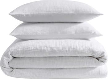 Garment-washed cotton gives a soft, lived-in feel to this modern comforter set complete with a reversible design that goes from crinkled jacquard to plain-weave.