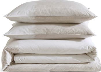 An ikat-inspired print brings rich visual texture to this duvet cover and shams set made from fine cotton percale with a cool, crisp feel.