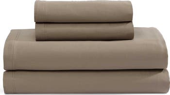 Bedtime is better with lightly lustrous 300-thread count organic cotton sheets that are dyed with plant-based dyes for an incredibly soft hand feel.
