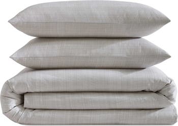 A relaxed addition to your bedroom retreat, this plush duvet-cover set is cozy and inviting with its textural ribbing and sophisticated stripes.