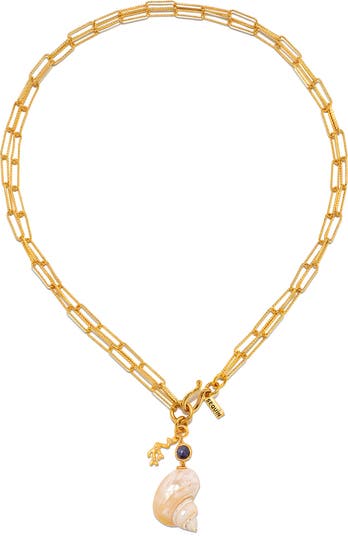 An ocean-inspired necklace brings rich shine to your neckline with its golden chain and eye-catching charms.