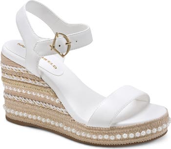 This platform-wedge espadrille with metallic threads and pearly beads highlighting the mixed-stitch jute is perfect for beach brides and anyone who wants to add a little boho glamour to their look.