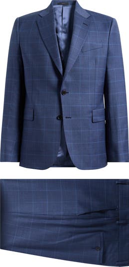 Camberwell Tailored Fit Blue Windowpane Check Wool Suit