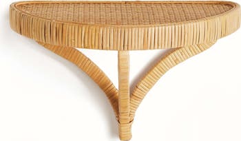 This simple rattan wrapped large woven bracket is a casual decorative shelf for your favorite accent pieces. A coastal look alongside framed prints when styled with your favorite little accents, books and shells.