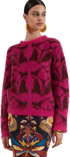 For when you’re perusing the vintage thrift stores, but your fellow bargain hunters can’t stop eyeing your sweater. The Camden Jumper is effortlessly cool, in eye-popping pink and green color ways with a nero hand-placed print throughout. Crafted from a luxurious brushed mohair blend, it’s surprisingly light but crave-ably cozy. Pair it with our matching Camden Skirt for a stop-traffic statement look, or our Better Than Your Boyfriend’s Jeans for an uber-cool London look with a little Italian energy thrown in.