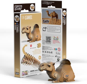 EUGY - a super-fun 3D puzzle that's eco-friendly and can be assembled in 10 to 20 minutes! Assemble this chill Camel puzzle and experience the magic of EUGY! This collectable toy is great for STEM concepts and craftable fun. It's sure to delight kids and adults alike! There are over 100 designs and counting for you to collect and enjoy! Characteristics: This Camel is taking a kneeling rest after a long journey! This 3D Camel puzzle is stylized yet accurate, featuring lifelife facial details, a tufted tail, and a single hump. A perfect arts and craft activity to help pass some time and teach following instructions. Puzzle also contains fun Camel facts to help kids learn while they build! Assembled puzzle measures 3.66" L x 1.74" W x 2.09" H. Materials: EUGY puzzles are made from high quality biodegradable cardboard and eco-friendly inks. Non-toxic glue is included for assembly. Age: 6+