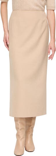Soft camel hair lends exquisite texture to this figure-skimming pencil skirt that radiates the label's polished, professional aesthetic.