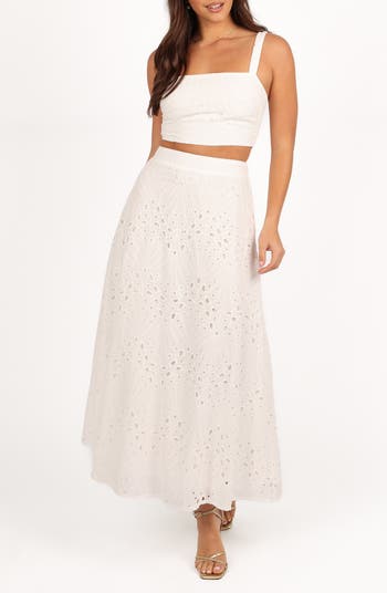 The summery style file is loving cotton eyelet, so a two-piece set that includes a perfectly paired crop top and maxi skirt is a winning way to own the trend.