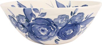 Bring the vitality of nature to your table all year long with this serving bowl decorated with hand-painted bouquets of flowers in vibrant blue hues.