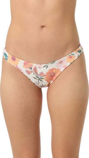 A vintage-inspired floral print stands out on these cheeky bikini bottoms.