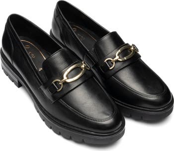 Polished bit hardware shines atop the textured leather of an elevated yet comfortable loafer grounded by a lug sole.