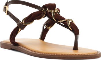 Interwoven chain links add the perfect touch of glamour to this fresh, summery slingback sandal.