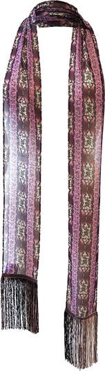Add a touch of whimsy to any outfit with the Cameo Stripe Print Fringe Scarf. Featuring playful stripes and delicate cameo motifs, this scarf is finished with soft fringe for movement and texture. A charming accessory that elevates everyday elegance with signature Anna Sui flair.