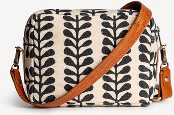 The perfect everyday crossbody bag handcrafted from block printed cotton canvas. This is a camera bag with a difference - made slowly and ethically, preserving age old methods of hand making. Perfectly practical with one slip pocket on the exterior, ideal for keeping your phone handy and one zipper pocket on the fully lined interior. Fully adjustable, recycled leather crossbody strap to get that perfect fit. PRODUCT DETAILS: Size: H 6” x W 8” x D 2.5” Materials: hand block printed cotton with recycled leather piping and crossbody strap Lining: cotton canvas lining Fair Trade and Social Enterprise Certified. Handcrafted from our studio in the Himalayas where we offer holistic, living wage work to those who have experienced barriers to work.