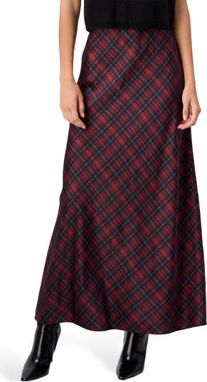 Cut from smooth stretch silk, this A-line maxi skirt is covered in festive and polished tartan checks.