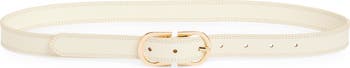 A shiny buckle commands the center of this slender leather belt that's great for adding the final touch to ensembles.