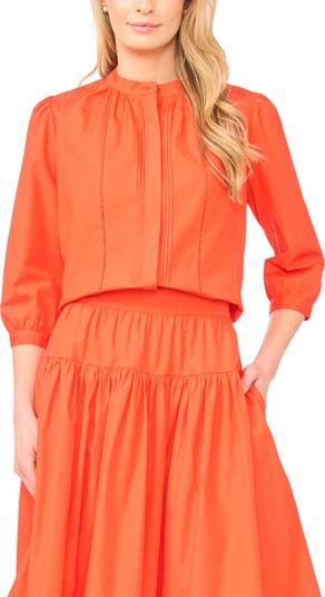 - Three-quarter sleeves with one-button cuffs