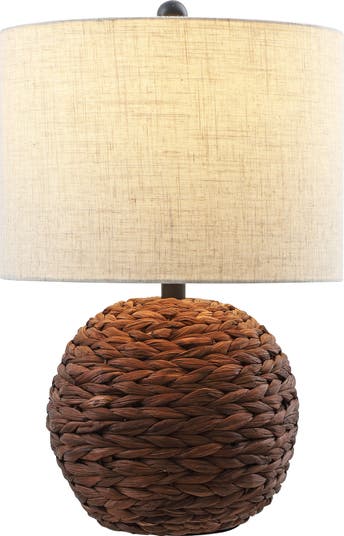 This versatile lamp combines modern style with coastal-inspired tones and textures for a timeless look. The globe-shaped base is covered in handwoven natural rattan fibers, and it's topped with a linen drum shade. The LED bulb adds bright, warm light to the bedroom, living room or office.
