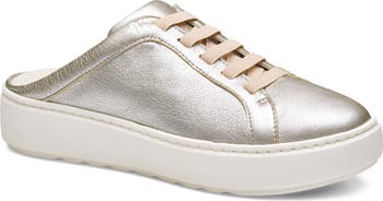 Elasticized laces and a mule-inspired profile add carefree and comfortable elements to a metallic leather sneaker grounded by a foam-cushioned footbed and platform cupsole.