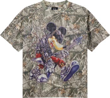 Hide in plain sight until the array of sparkling crystals on this roomy camo-print T-shirt gives you away.
