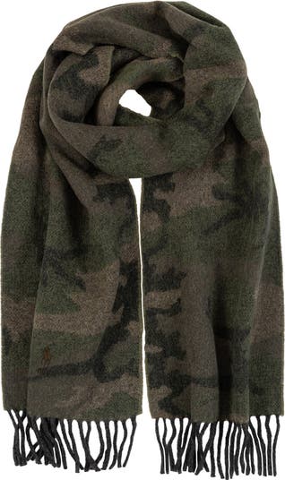 Envelop yourself in this supersoft scarf made with a blend of recycled wool and jacquard woven in a deeply heathered camouflage pattern.